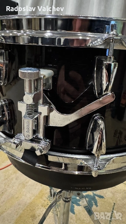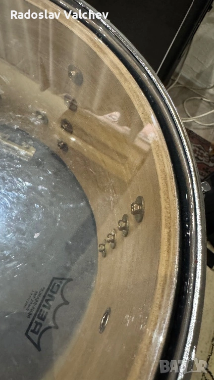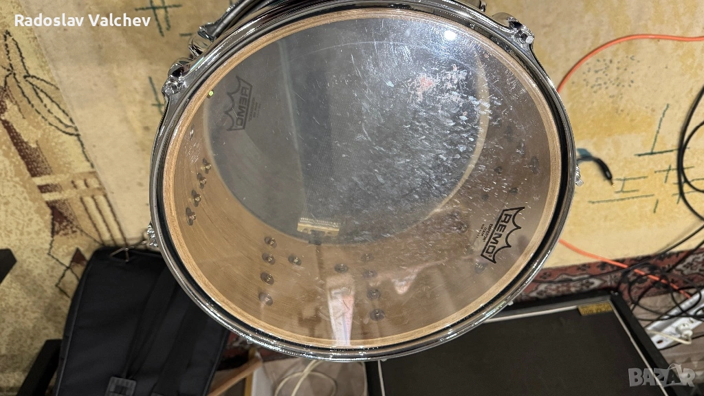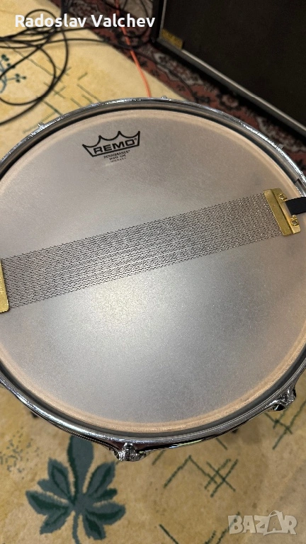 Барабана е с чисто нова Резо кожа “Remo” (мога да предоставя касов бон от покупката) и почти нова бойна Remo Emperor Clear. Пружината е сменена с по-висок клас - карбонова (super sensitive) на Тама!
