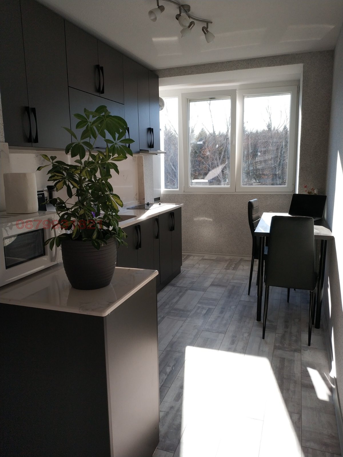 Двустаен непреходен - две самостоятелни стаи + модерна оборудвана, кухня с трапезария, + тераса.