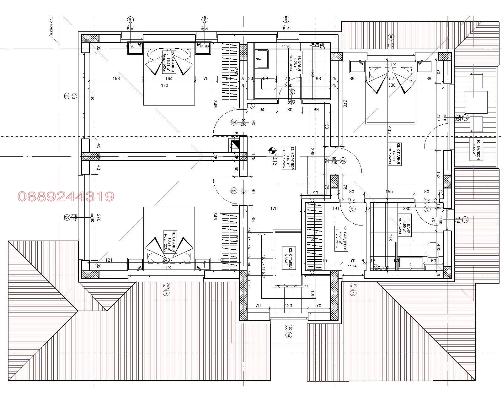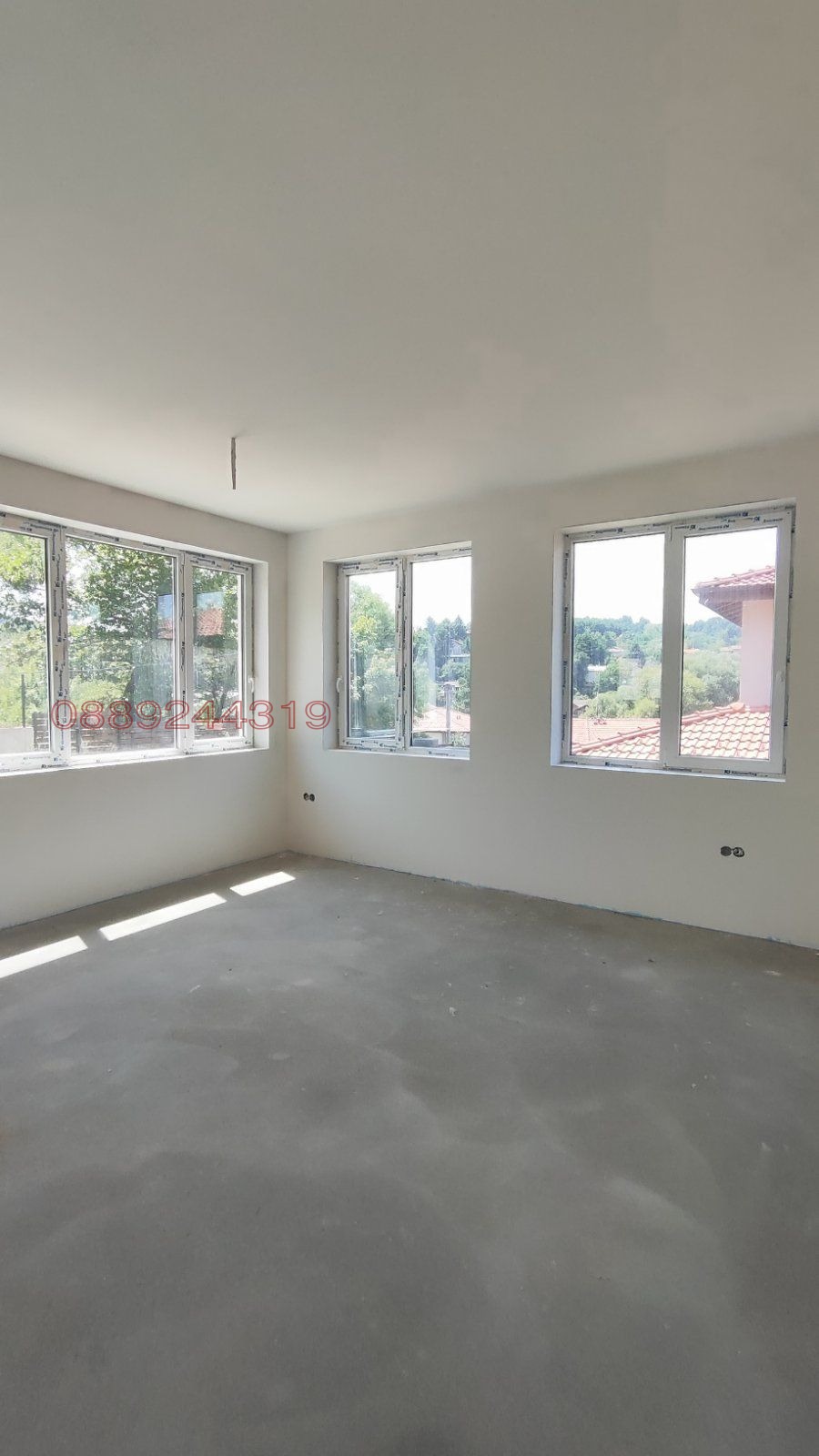 Нова къща от Собственик с Акт 16 ( УВЕ) . Площ 216 кв.м., на два етажа. Състои се от: първи етаж - просторна дневна с големи френски прозорци, кухня към дневната със склад, втори склад, баня с тоалетна. веранда , една спалня ; втори етаж - три спални, две бани, родителската спалня е с тераса, гардеробно и баня към нея. Обща баня за другите две спални. Достъп до подпокривното, с прибираща се стълба. Стоманобетонна конструкция. Дървен покрив, с полимерни керемиди. Изградена мълнезащита. Дограма с троен стъклопакет. Изградено ВиК. Вентилация за мокрите помещения. Изградена ел. инсталация. Окабеляване на интернет и телевизия, СОТ и камери. Прекарани кабели за индивидуално управление на отоплението на всяко помещение. Изградено подово отопление с колектори и колекторни кутии. Изводи за термопомпа. Вътрешно е на шпакловка и подова замазка. Топлоизолация - стиропор 10см. на стени и 20см. минерална вата върху последна плоча. Дренаж около къщата и изведени от имота дъждовни води. Дървена ограда. Павирани алеи около къщата. Дворното място е с площ от 489 кв.м. Двете паркоместа са асфалтирани , до тях е изведено захранване за зареждане на електромобили . Само за частни лица . На асфалтиран път .