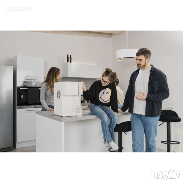 Aquaton Prestige разполага с капацитет до 2 л/мин студена вода, 1 л/мин газирана вода и 1.2 л/мин вода на стайна температура. Компактните размери 28 × 40.5 × 46 см и елегантният дизайн я правят стилно допълнение към всяко модерно пространство.