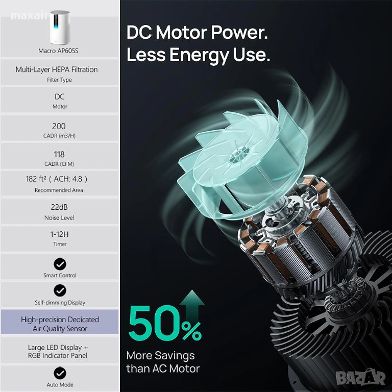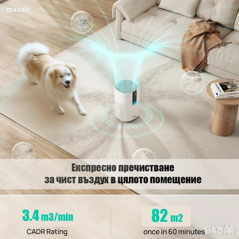 CADR (максимален обем филтриран въздух): 202 м3/час