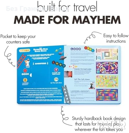 Подходяща за деца 3+, за семейни игри у дома, в ресторант, къмпинг, самолет и кола