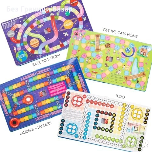 4 игри в 1: Ludo, Race to Saturn, Get the Cats Home, Ladders + Ladders