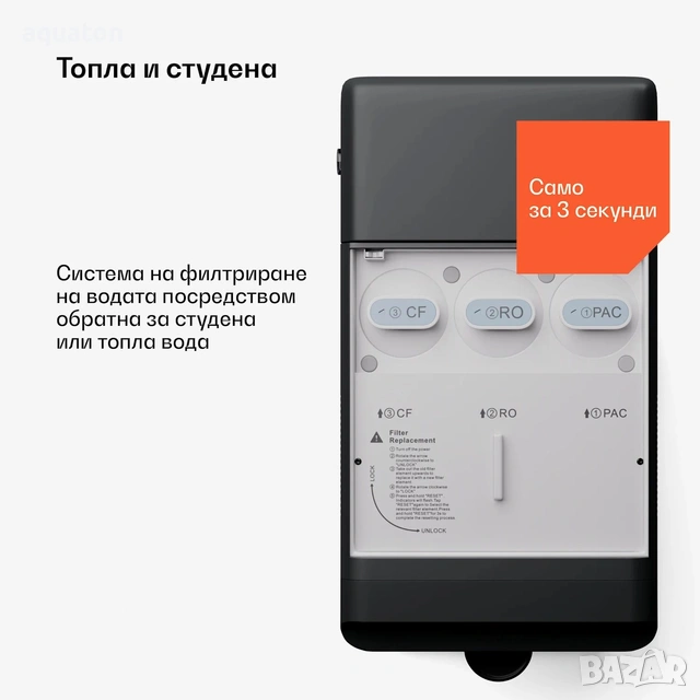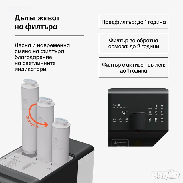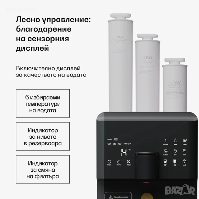 На дисплея има постоянен индикатор за качеството на водата - TDS метър в реално време.