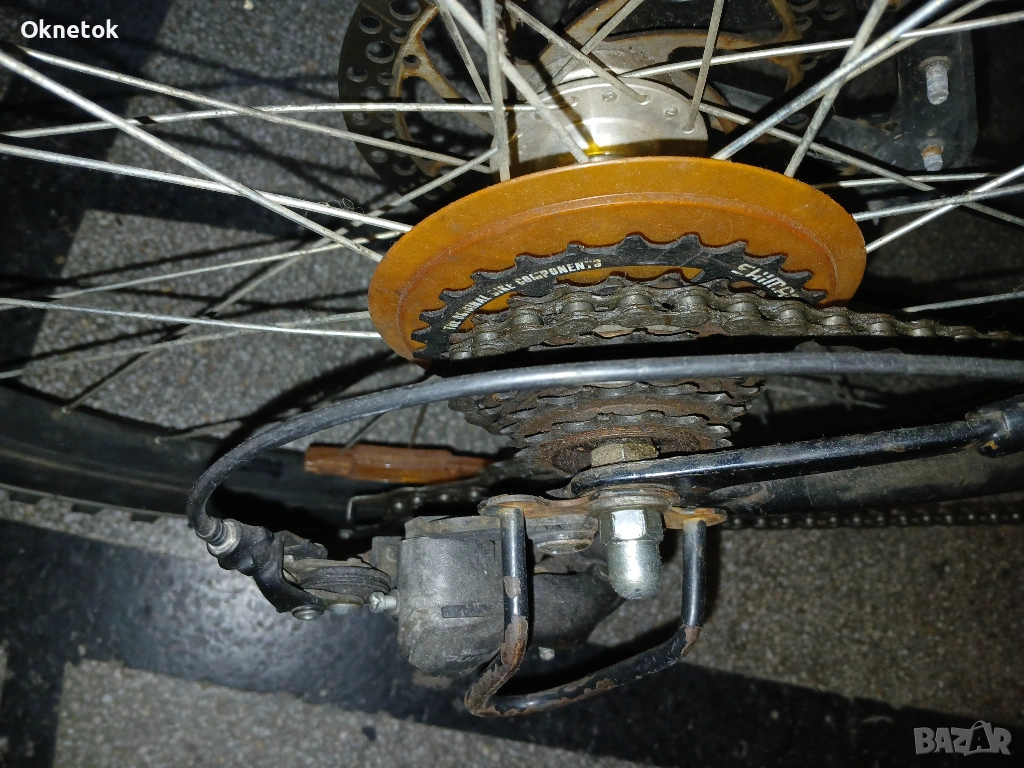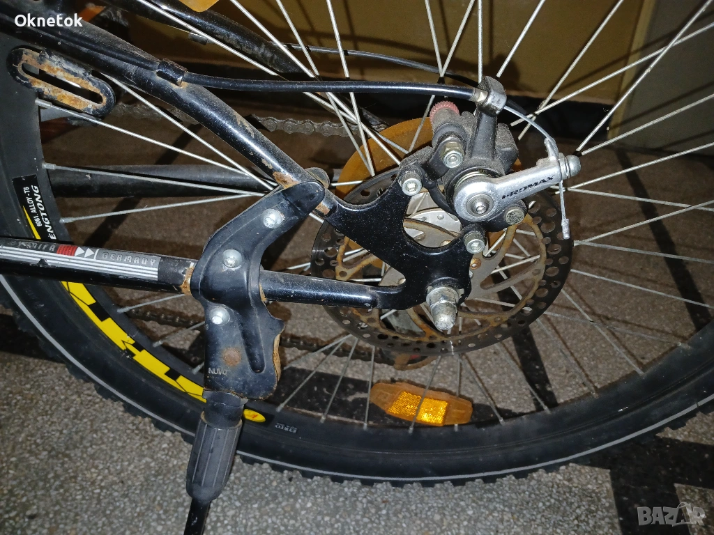 Всичко е видно от снимките – алуминиева рамка, алуминиеви капли, добри гуми, седалка в добър вид, здраво кормило, „пачи” крак и т.н. (Кормилото е прибрано така за икономия на място.)