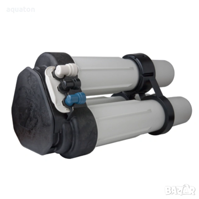 Включва предварителен филтър с активен въглен, две RO мембрани TLC350 за висока производителност и пост-филтър за финално подобряване на вкуса. Подмяна на въглеродните филтри е на 6–12 месеца, а на мембраните – на 2–4 години.