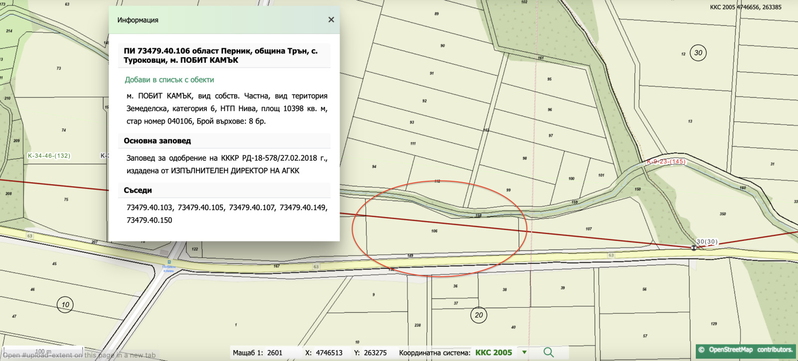Продава се земеделска земя в района на гр. Трън, област Перник, в землището на село Туроковци (ЕКАТТЕ 73479). Имотите са вписани в Регистъра на земеделските земи, горите и земите от ГФ.