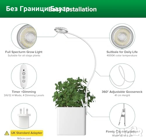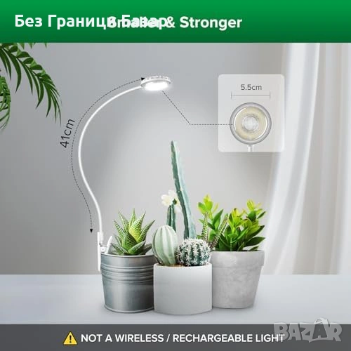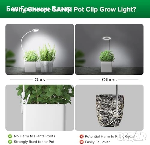 лампа за стайни растения с клипс – лесно закрепване към рафт, бюро или саксия