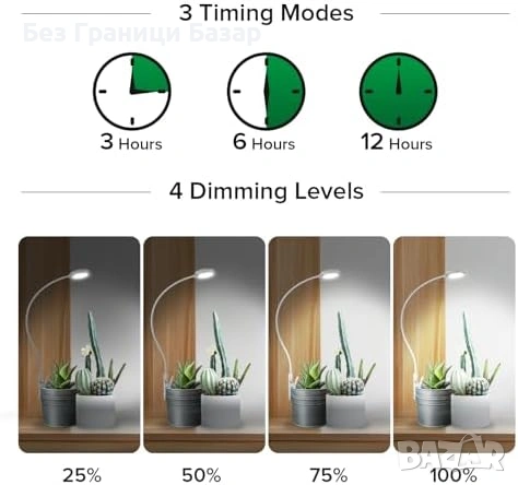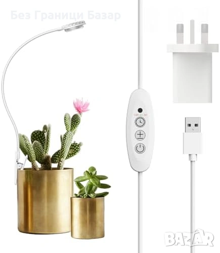 Нова Лампа за растения LED 4/8/12ч таймер 4 нива димиране с клипс