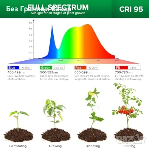 Пълeн спектър 4000K (неутрално бяло) – подходяща за всички етапи: разсад, растеж, цъфтеж