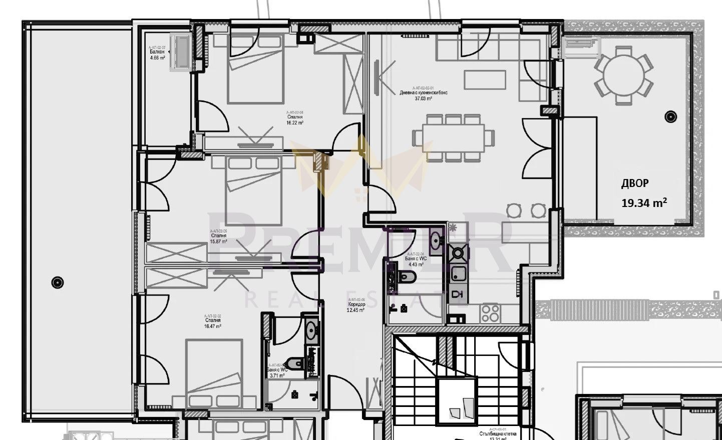 Имаме удоволствието да ви представим този просторен и светъл имот с обща площ 166 кв.м., разположен в модерна жилищна сграда с асансьор, която ще бъде завършена през 2027 г.