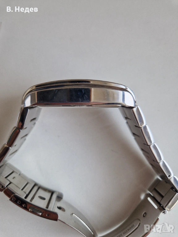 Фабрично лого - върху циферблата и гърба на корпуса; Верижката е като нова, почти пълна дължина, /налично звено/. Предлага се и с кожена каишка, ест. кожа - т. кафява.
