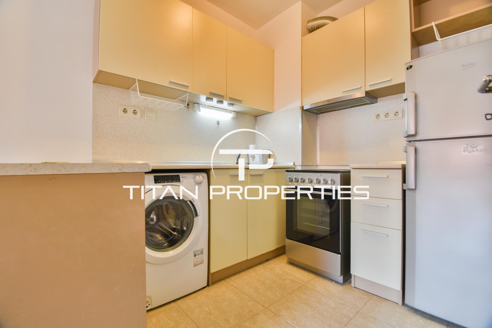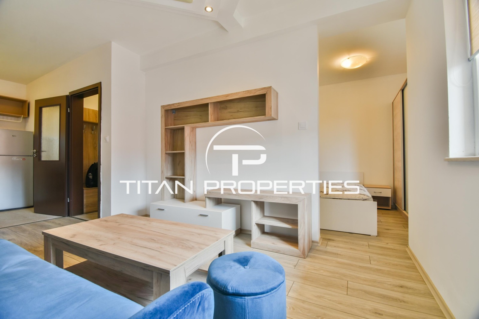 Титан Пропъртис - офис Младост с радост предлага на Вашето внимание двустаен апартамент под наем в жк. Банишора, София. Жилището с площ 40 кв.м е разположено на 3-ти етаж от 6 в нова сграда. Изложението е Изток/Юг. Разпределението включва хол с кухненски бокс, спалня, баня с тоалетна и тераса. Апартаментът е обзаведен, отоплява се на ток, посредством климатици.