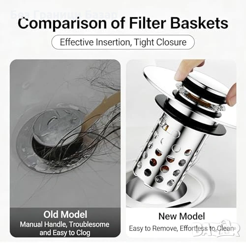 Нова Тапа сифон за баня 3 в 1 неръждаем филтър косми бързо оттичане