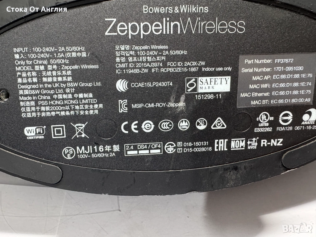 Тонколона - Bowers & Wilkins Zeppelin Wireless