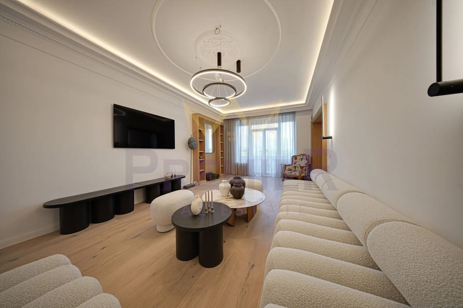 Апартаментът е напълно реновиран по индивидуален дизайнерски проект, с внимание към детайла и използване на висококачествени материали и обзавеждане.