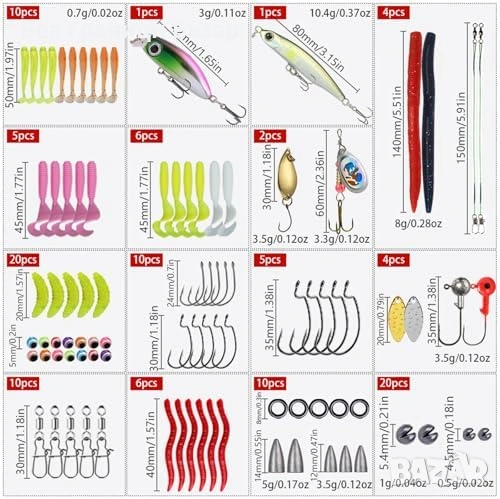 Комплект риболовни примамки и аксесоари – 114 части