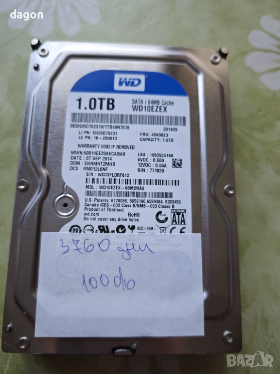 Wd 1tb 3.5 без забележки без бад сектори работи безупречно
