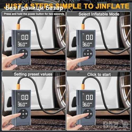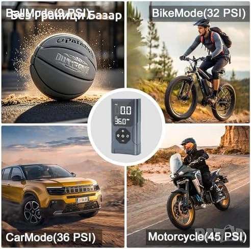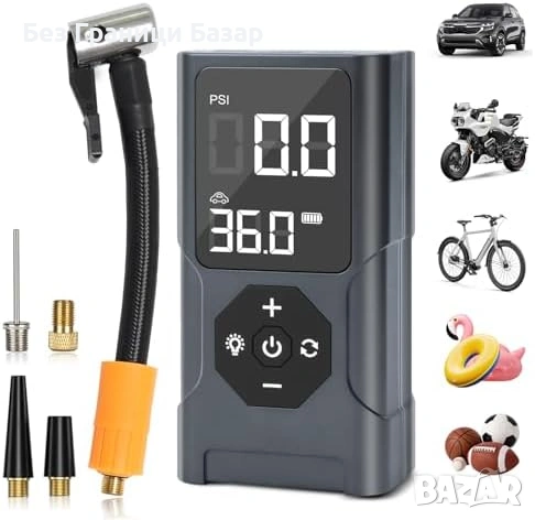 Преносим безжичен компресор за гуми и спортни топки – автомобил, велосипед, баскетбол и др.
