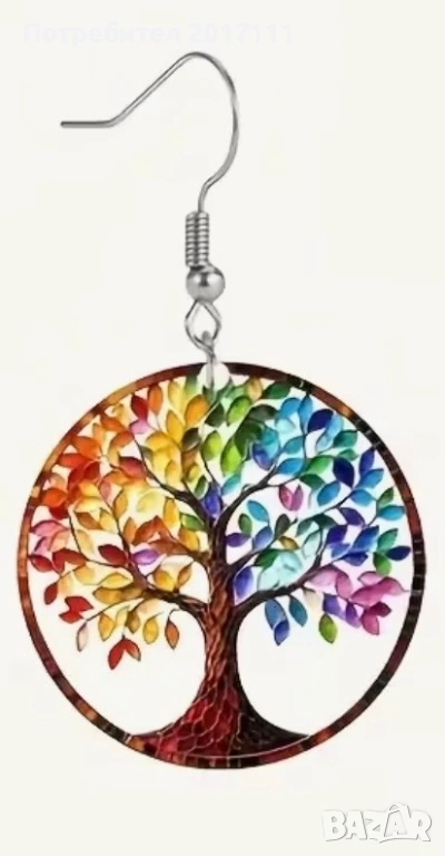 Дамски обеци „Дървото на живота“ с чакра цветове. Леки и ефектни обеци, символ на баланс, хармония и ново начало – перфектен подарък със смисъл и стил.