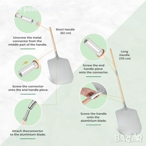 Професионална лопата за пица с гладко алуминиево острие за лесно плъзгане в пещта