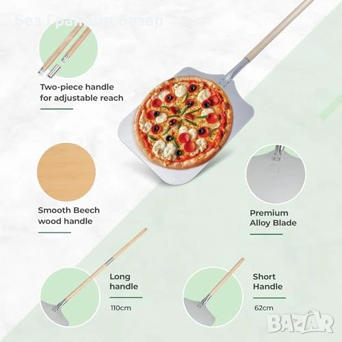 Нова Професионална лопата за пица, алуминий, регулируема дръжка бук 62/110 см