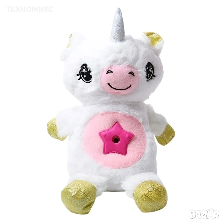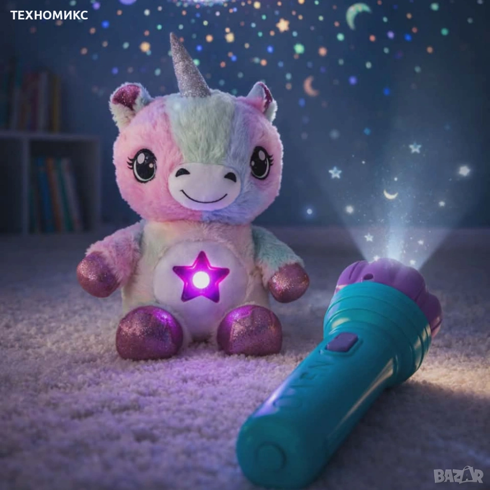 Плюшена играчка и проектор звездно небе еднорог с фенер;