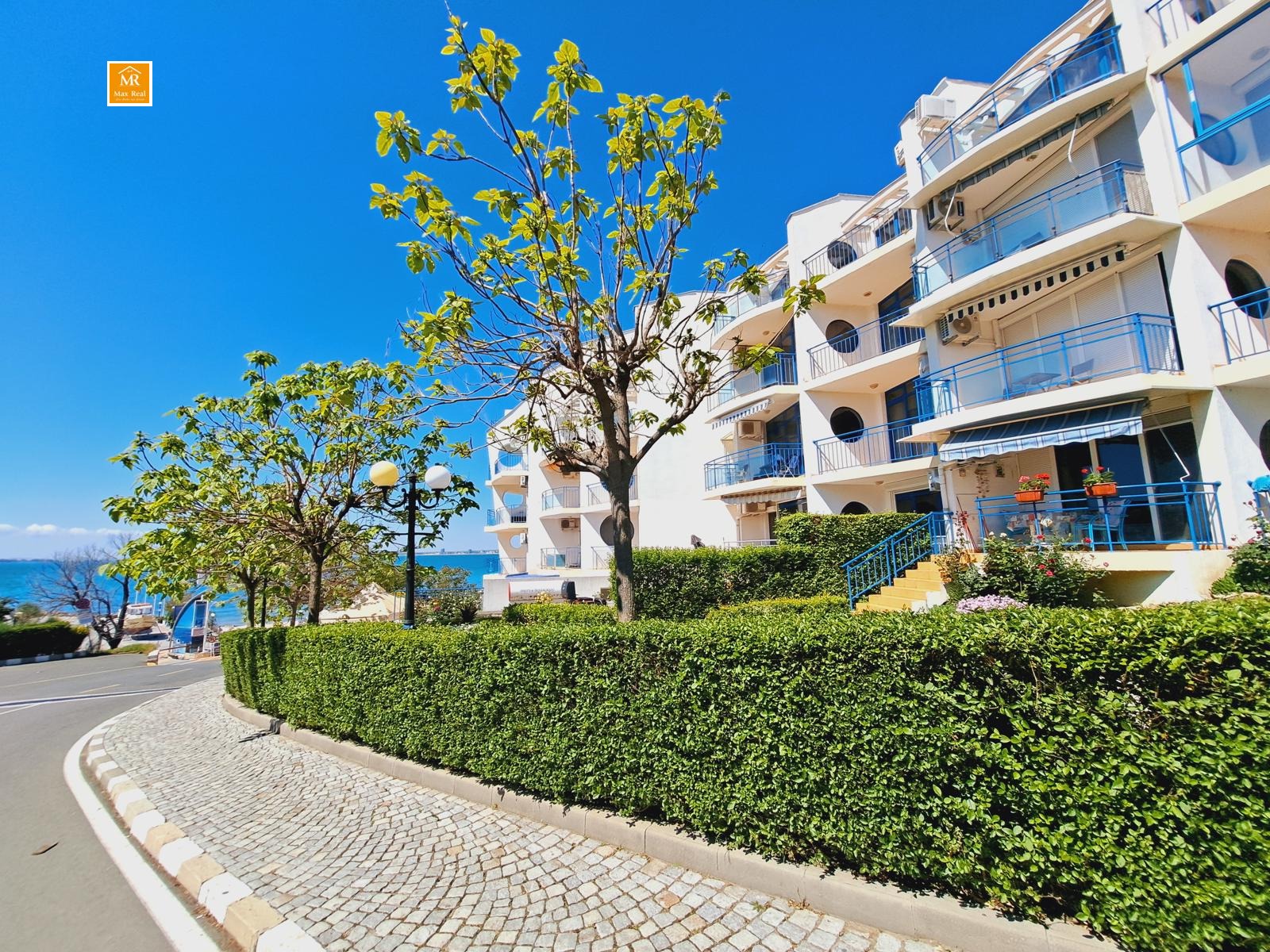 Апартаментът има южно изложение, намира се на партерен етаж и се състои от: просторна дневна с отелен кухненски бокс, спалня, две бани. Имотът се предлага обзаведен: мека мебел, кухненски бокс с фурна, аспиратор, пералня и голям хладилник, оборудвани бани с тоалетна и душ-кабина, климатик. От имота се открива великолепна панорамна гледка към морето и Стария Несебър! Сградата има Акт 16.
