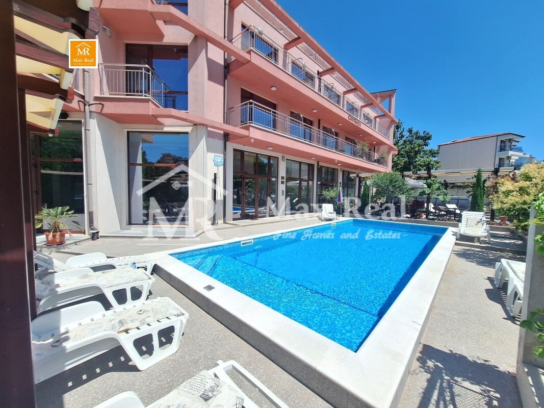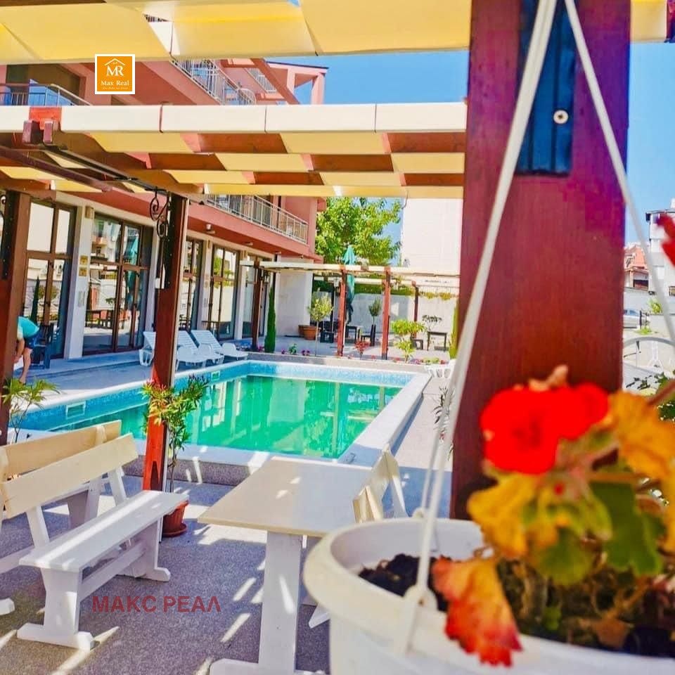 Предлагаме на Вашето внимание сграда с РЗП 1450 кв.м., разположена в парцел с площ 900 кв.м., на който има изграден плувен басейн. Състои се от апартаменти и ресторант, допълнителни помещения и може да функционира като хотел! Всички обекти в сградата са самостоятелни с индивидуални идентификатори, с отделни партиди за ток и вода. Сградата има Акт 16.
