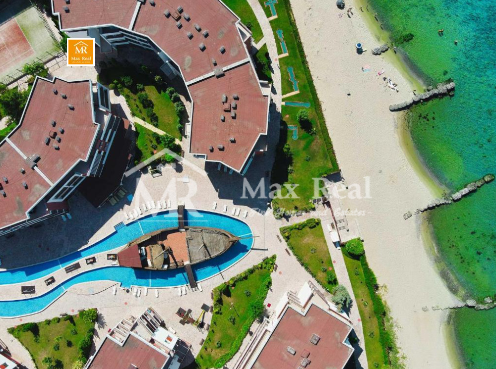 Комплексът се намира на първа линия море, само на няколко метра от плажната ивица. От другата страна е заобиколен от Стара планина, което ви позволява да се наслаждавате на уникалния климат съчетание от морски и планински въздух!