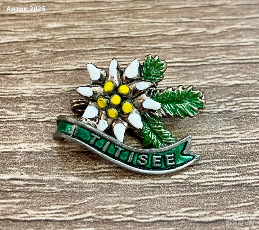 Винтидж емайлирана сувенирна брошка-значка „Еделвайс“ от Титизе, Германия