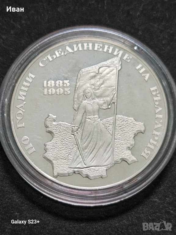 Продавам сребърна монета 1000 лева от 1995 година,110 години от Съединението,23.33 грама с чистота 925/1000 и тираж 15 000 броя.