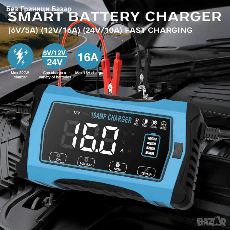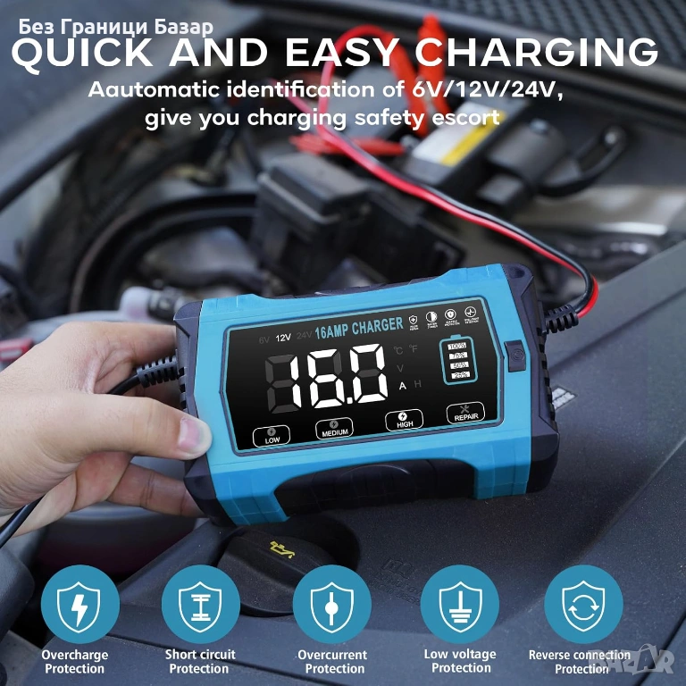 Интелигентно зарядно за акумулатори: 6V/5A, 12V/16A, 24V/10A