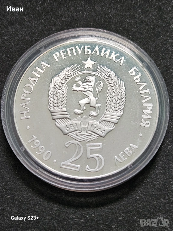 Продавам сребърна монета 25 лева от 1990 година → Обява 53693413