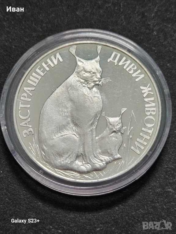 Продавам сребърна монета 25 лева от 1990 година,от поредицата Застрашени диви животни-рис,23.33 грама с чистота 925/1000 и тираж 14 840.