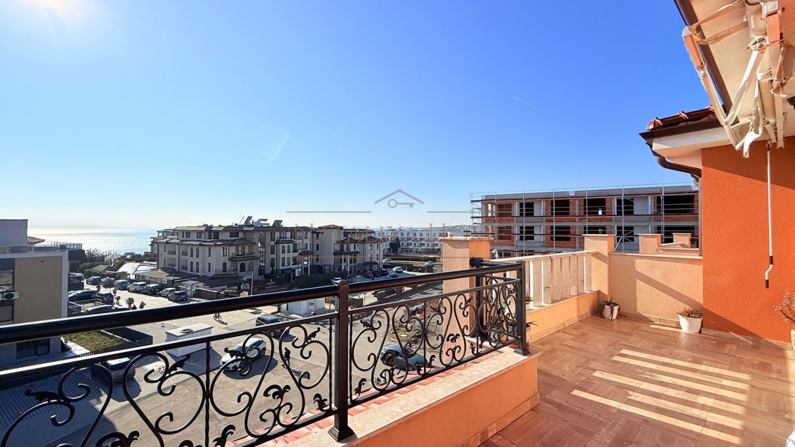 Имотът се намира на последен четвърти етаж, с обща площ от 105,83 кв.м. и се състои от антре, всекидневна с кухня, две спални, всяка с дрешник, баня/WC и тераса с прекрасна морска панорама.