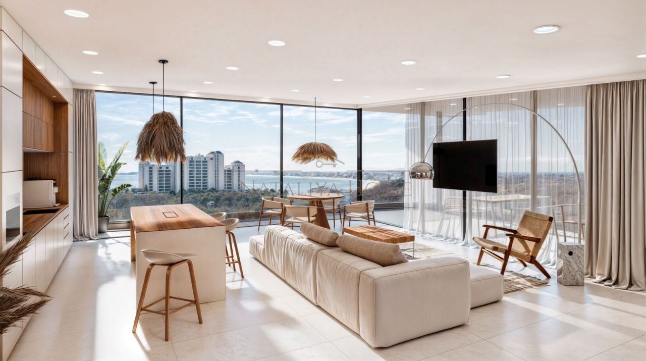Характерен елемент на проекта са лоджиите, които са интегрирани в самата сграда и представляват естествено продължение на жилищното пространство. Те осигуряват защитена външна зона с високо ниво на уединение и възможност за целогодишно ползване. Благодарение на напълно отваряемите стъклени стени, вътрешните пространства плавно преминават към откритата част, създавайки идеална среда за сутрешно кафе, релакс през деня или вечеря по залез с морски бриз.