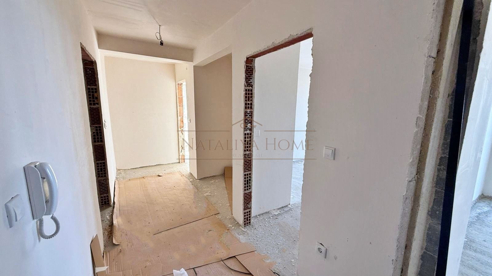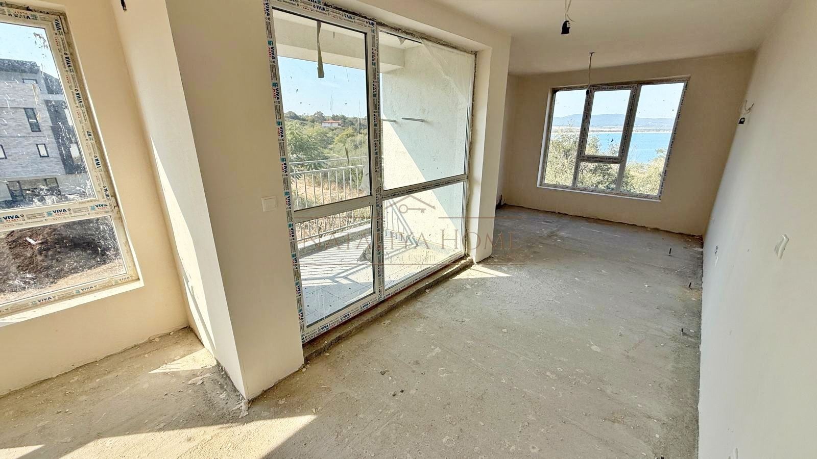 Апартаментът е с площ от 110,6 кв.м., разположен на втори етаж в модерна жилищна сграда. Жилището предлага удобно разпределение входно антре, светла всекидневна с кухненски бокс и трапезария, баня с тоалетна, мокро помещение, склад и три тераси , всяка с гледка към морето . Жилището е с югозападно изложение. Апартаментът се продава на тапа с възможност за завършване до ключ според предпочитанията на новия собственик. Към имота има възможност за закупуване на гараж.