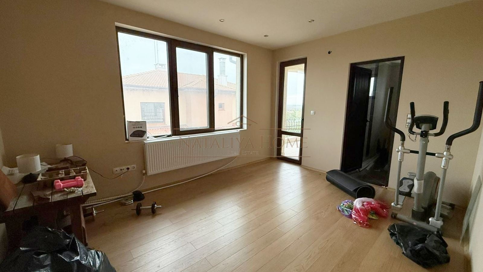 Къщата впечатлява с антре, просторна дневна с кухня и трапезария, четири комфортни спални, четири бани/WC, както и просторно складово помещение. Имотът се продава се напълно обзаведен и оборудван.