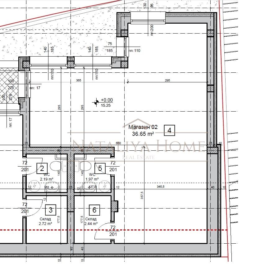 Магазинът е с Площ: 62,36 кв.м, на партерен етаж и се състои от просторно търговско помещение, склад, самостоятелен санитарен възел.