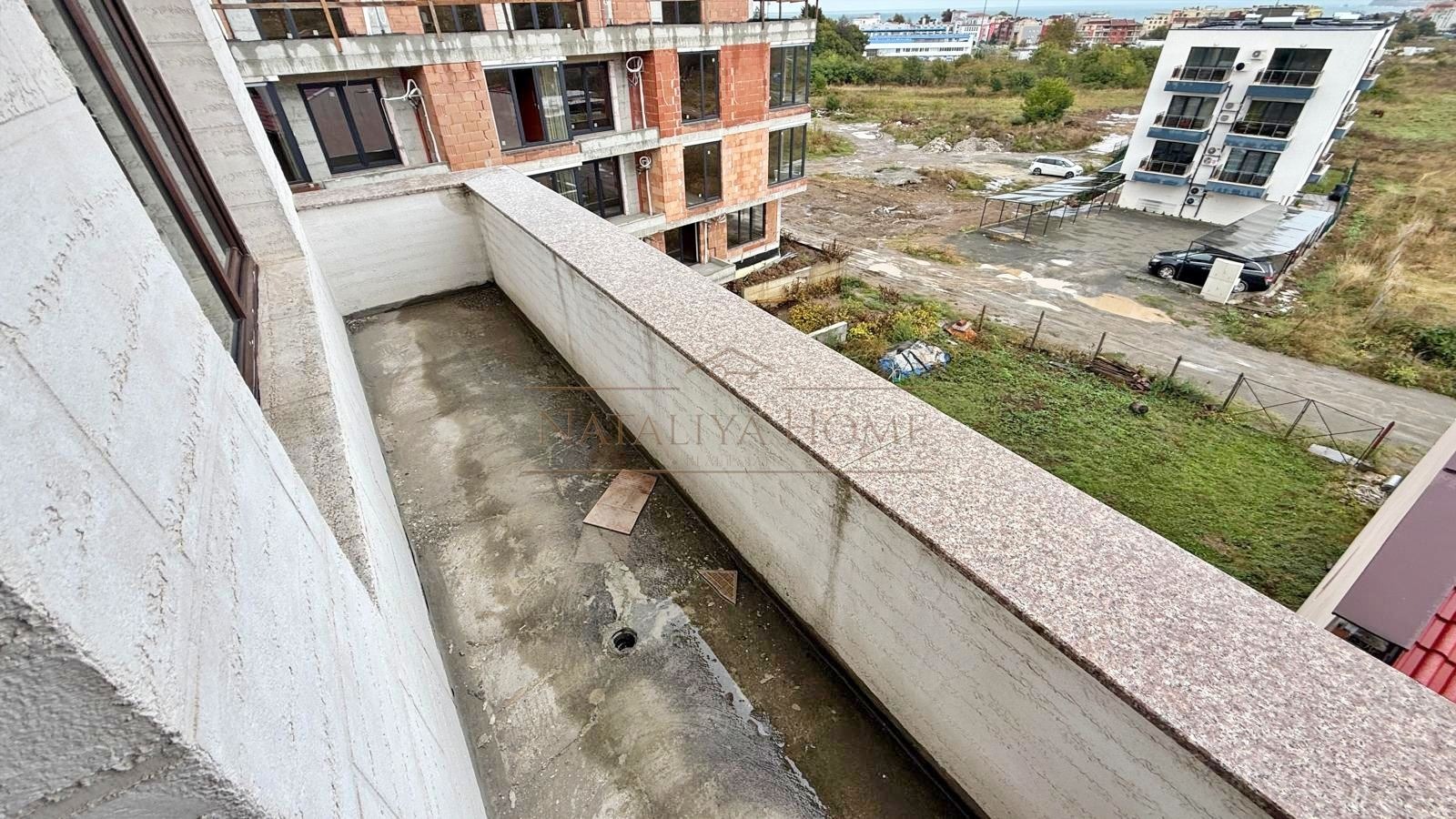 Апартаментът е с площ от 93,69 кв.м, разположен на трети етаж. Състои се от входно антре, просторна всекидневна с кухненски бокс и трапезария, баня с тоалетна и тераса с гледка към морето. Апартаментът е с източно изложение, което осигурява естествена светлина и уют през целия ден. Имотът се продава на тапа, което дава възможност на новия собственик да завърши жилището по свой вкус и стил.