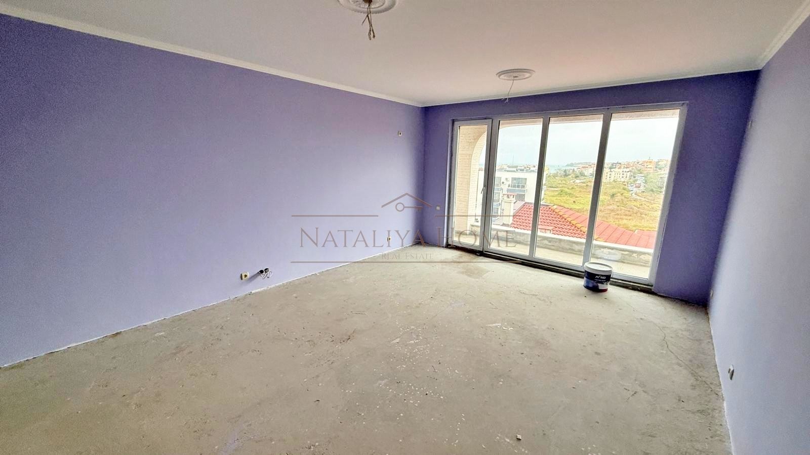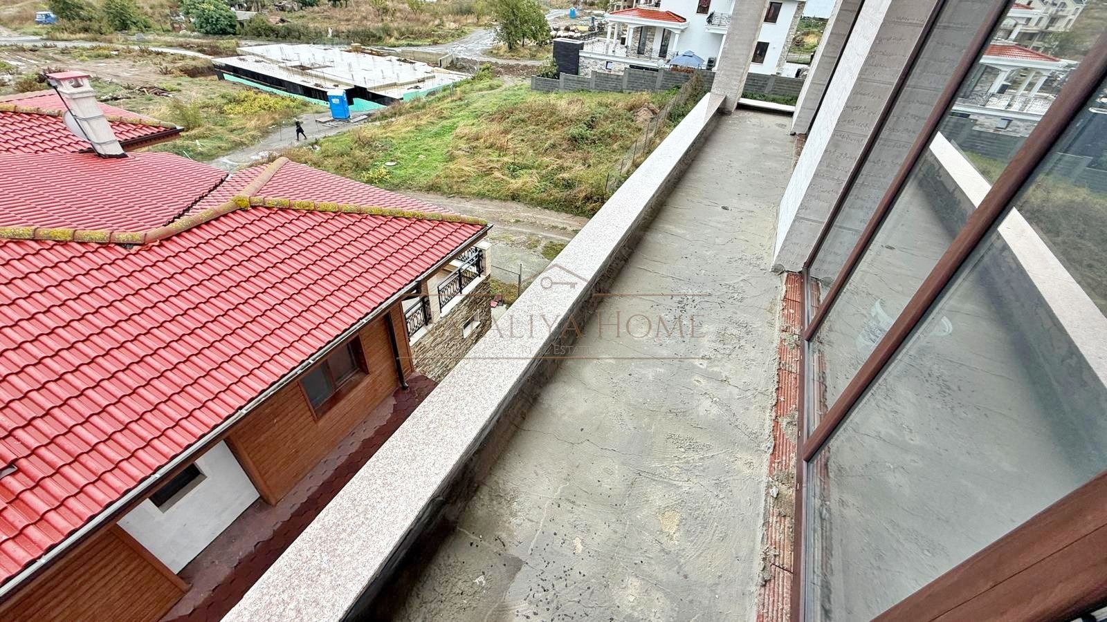 Апартаментът е с площ от 53,42 кв.м, разположен на трети етаж. Състои се от входно антре, просторна всекидневна с кухненски бокс и трапезария, баня с тоалетна и тераса с гледка към морето. Апартаментът е с източно изложение, което осигурява естествена светлина и уют през целия ден. Имотът се продава на тапа, което дава възможност на новия собственик да завърши жилището по свой вкус и стил.