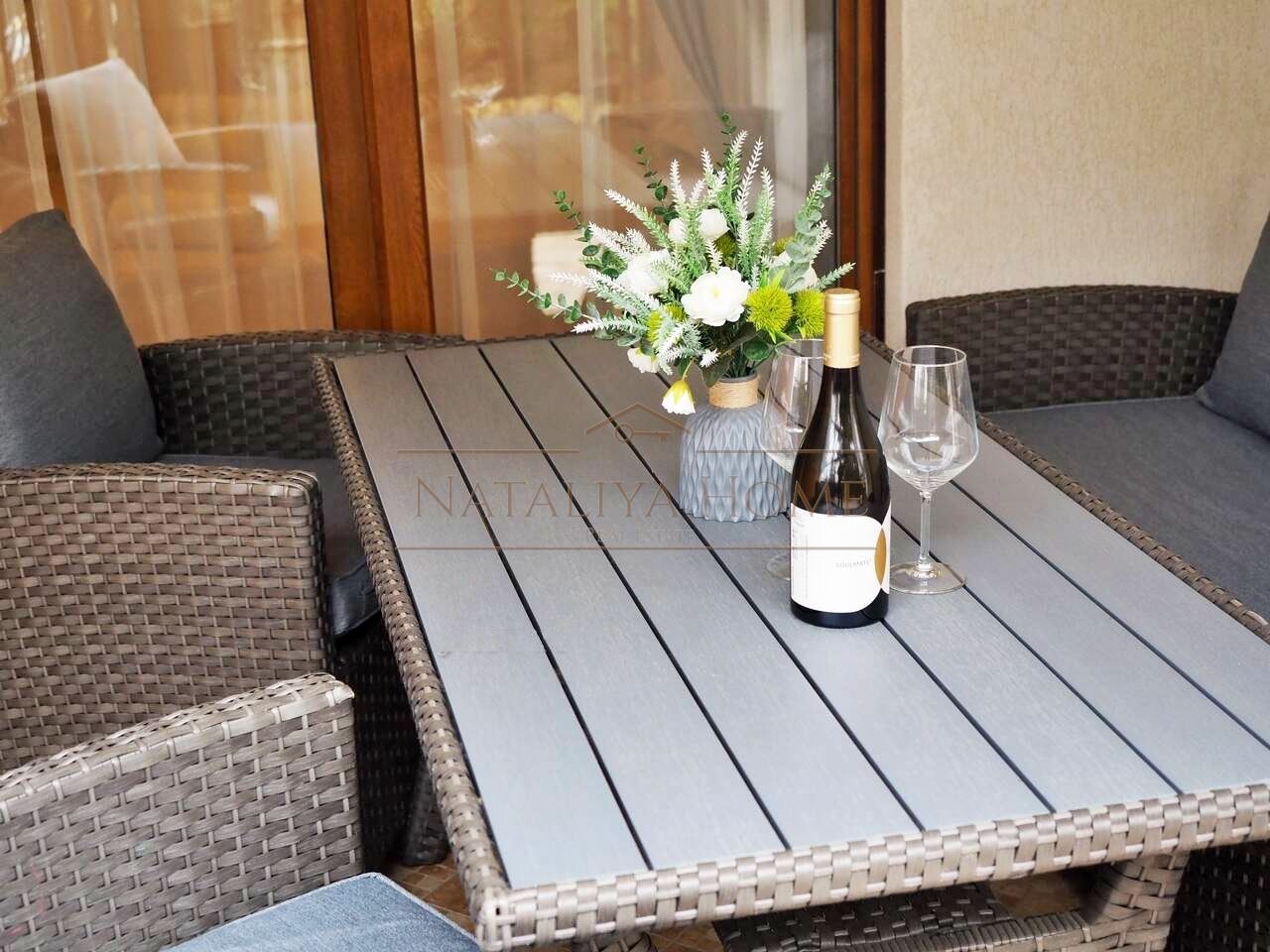 Апартаментът е с площ от 64 кв.м, разположен на партерен етаж в престижния ваканционен комплекс Санта Марина . Жилището се състои от светла и функционална всекидневна, обединена с кухненски бокс и трапезария, зона за спане, баня с тоалетна и уютна тераса с гледка към морето за уютни летни вечери. Апартаментът е след основен ремонт , напълно обзаведен и оборудван с нови електроуреди. Подходящ е както за уютен дом, така и за сигурна инвестиция с висока възвращаемост.