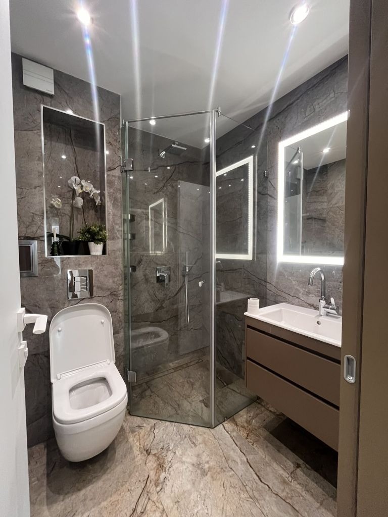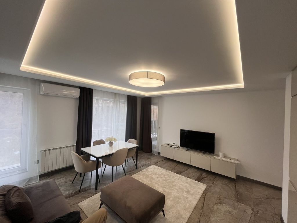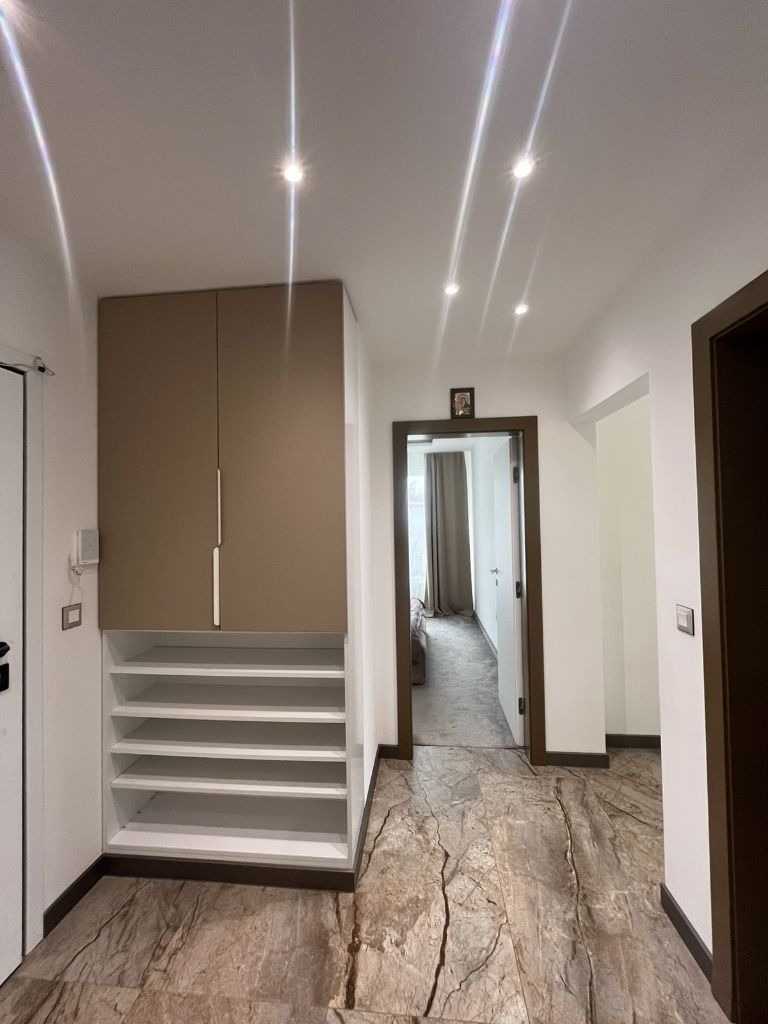 ?Апартаментът е проектиран с мисъл за максимален комфорт и простор, на 1ви етаж над партер с квадратура от 100кв. м.