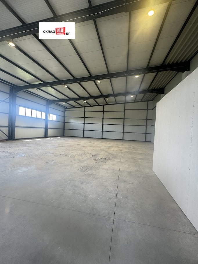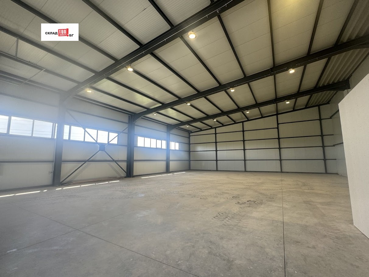 Отдава под наем складово помещение ново строителство изпълнено с метална конструкция и теропанели, под шлайфан бетон, височина 7 метра до билото с рампа и директно влизане на превозни средства в него. Наличие на всички комуникации ,пътна връзка, лесен достъп на околовръстен път и други пътни артерии.Складът може да се раздели на две части по 400 кв.м. Лице за контакт Огнян Георгиев.