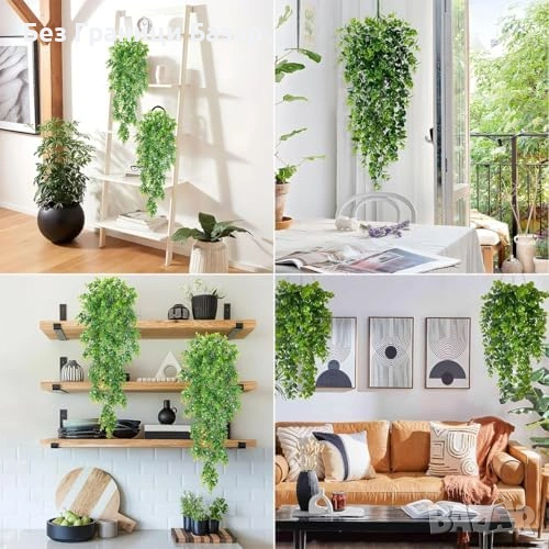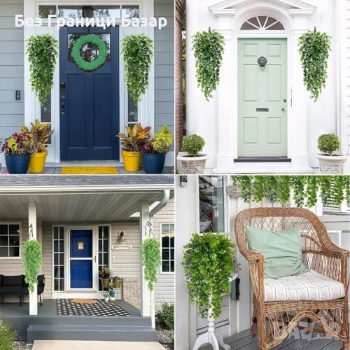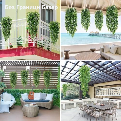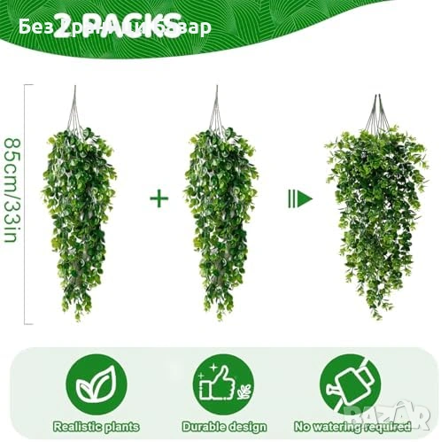 Нови Фалшиви висящи растения евкалипт 2 броя реалистичен зелен декор стая