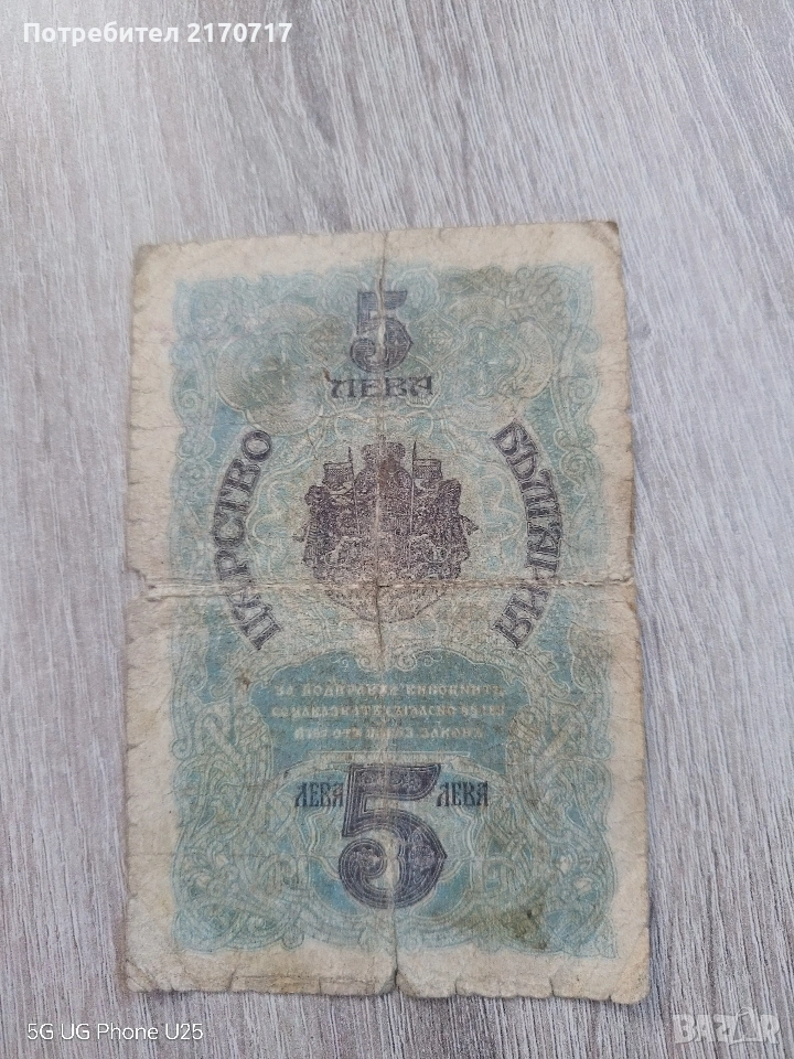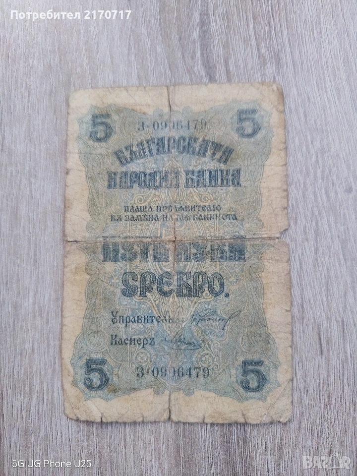 Банкнота 5 лева 1916 година → Обява 53694110