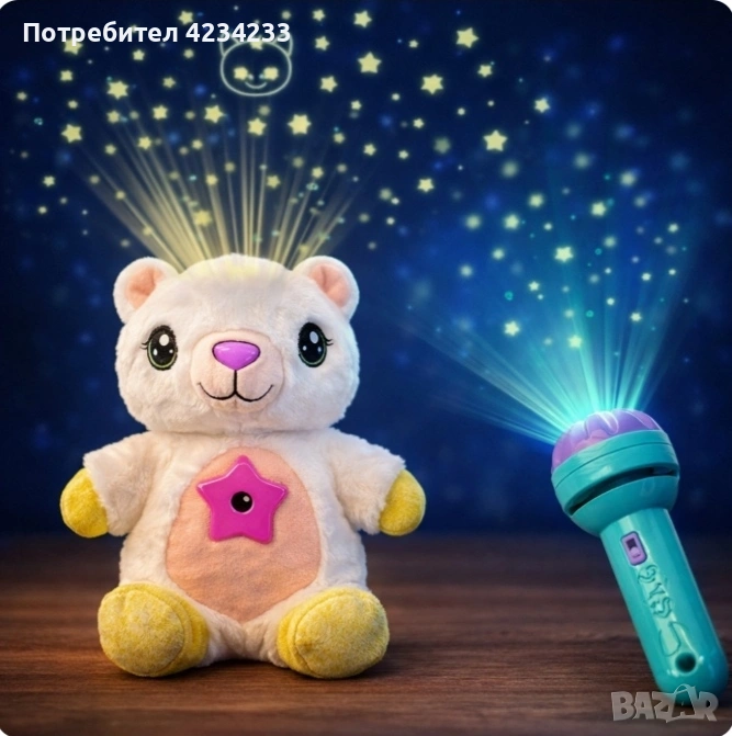 Плюшена играчка и проектор звездно небе мече с фенер.
