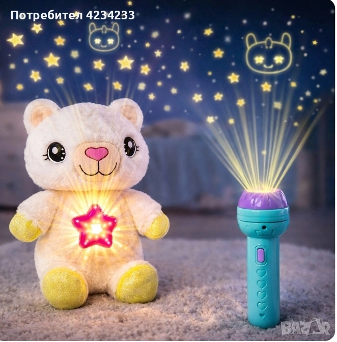 Плюшена играчка с нощна лампа 2в1+детски фенер-проектор със светлинни ефекти → Обява 53694151