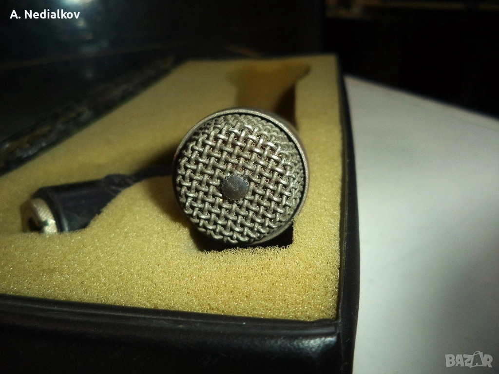 Към микрофона има държач и кутия.